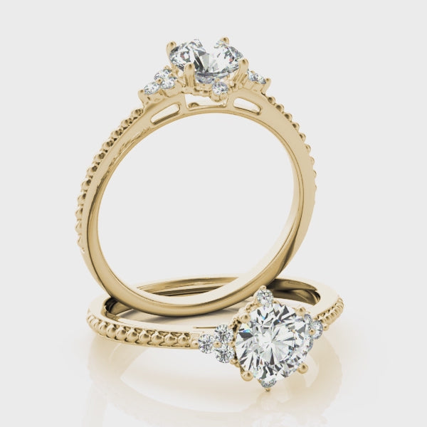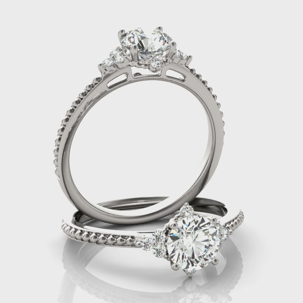 The Nordic Star Ring offers a delicate touch of elegance, featuring small round lab-grown diamonds that enhance the brilliance of the center stone. The setting, available in any of our precious metals, is adorned with beaded detailing, paying homage to heirloom styles that stand the test of time.